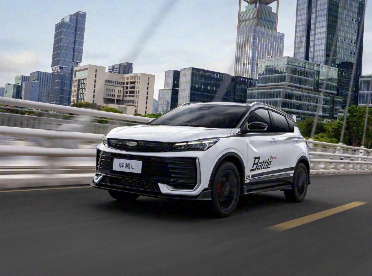 缤越L Battle车身基于缤越L打造,黑色的A柱与弧线形车顶一气呵成,在黑色B柱/C柱和D柱和全车黑色隐私玻璃的作用下,带来了悬浮式车顶的立体感。优雅、灵动的车身贯穿了整个车身从前翼子板处一直延伸至车尾,渐进式的黑色轮眉更加立体,层次感丰富。缤越L Battle版进一步激活运动基因,新增碳纤维风格运动套件,配合专属Battle标识,还配备了18英寸的熏黑铝合金轮圈、红色的刹车卡钳,以及领航雾灯组。新增碳纤维风格运动套件,配合专属Battle标识,更具运动战斗感。尺寸方面,长宽高为4380/1800/1609mm,轴距2600mm。吉利工程师透露,这种设计不仅为了美观,更能优化空气动力学表现。 实测0.318Cd的风阻系数比很多轿车都低,这对于提升加速性能和降低油耗都有实质帮助。